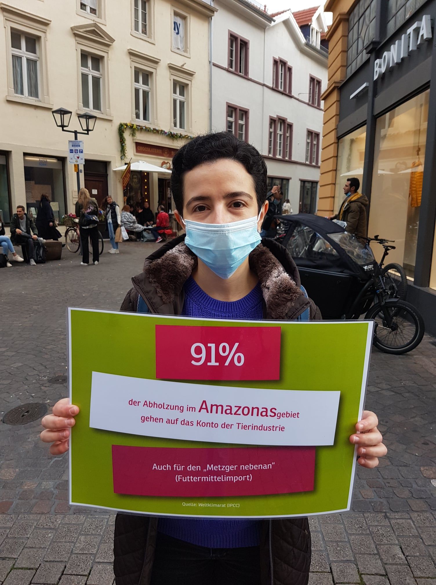 „Corona das vom Tiermarkt kam, bringt Tod und legt das Leben lahm. Drum lerne Mensch aus der Geschicht, Tiere essen macht man nicht!“